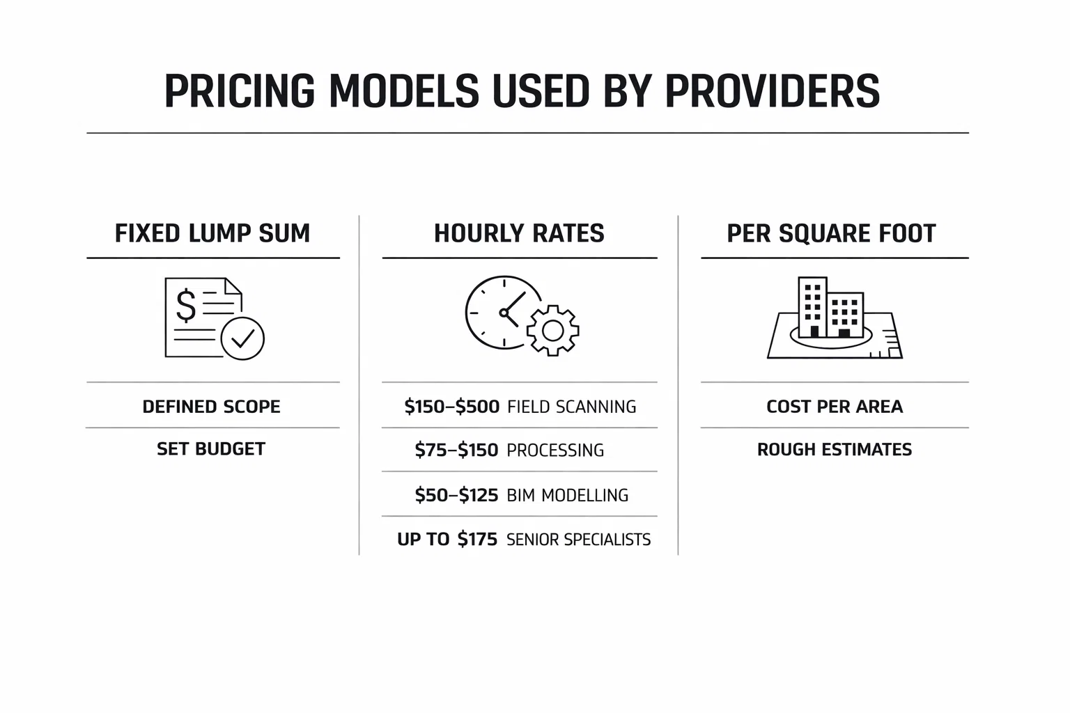 Typical scan-to-BIM pricing ranges include: