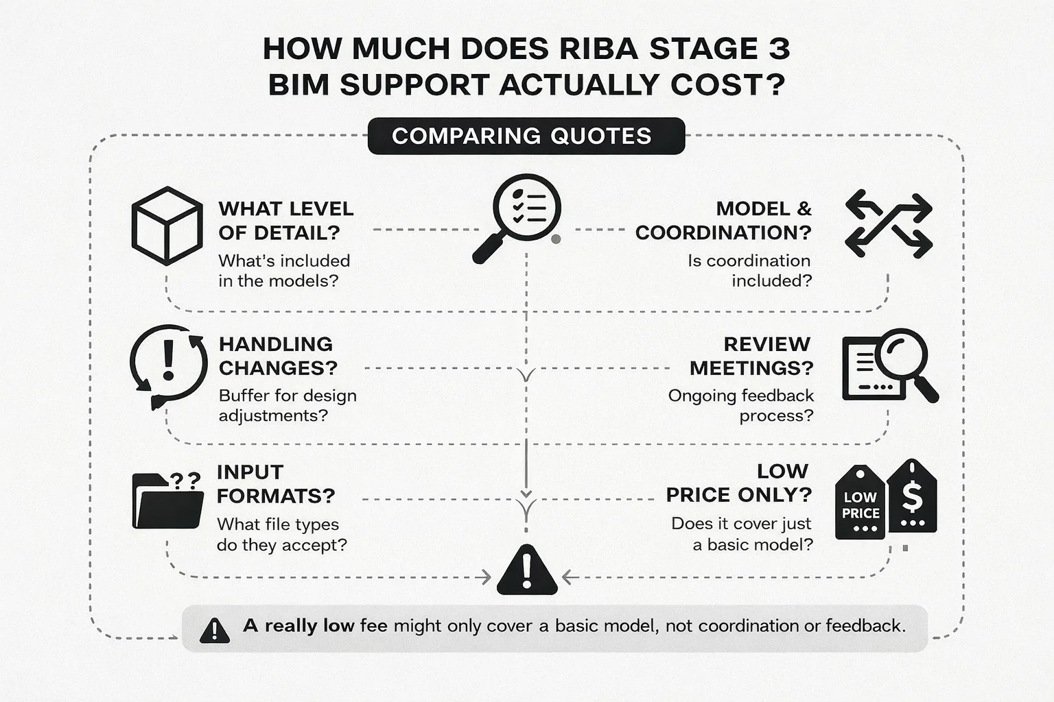 A lower fee might look good until you realize it only covers the base model, not the hard work of resolving spatial issues.