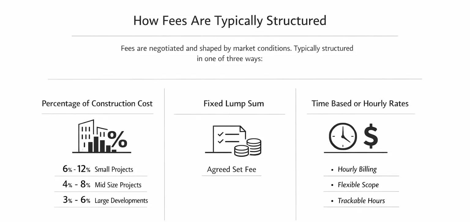 There is no universal fee scale. In the past, professional bodies published recommended percentages. Today, fees are negotiated and shaped by market conditions.